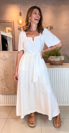 Este vestido é confeccionado em viscose pré-lavada, um tecido macio, fresco e com caimento impecável — perfeito para os dias quentes.