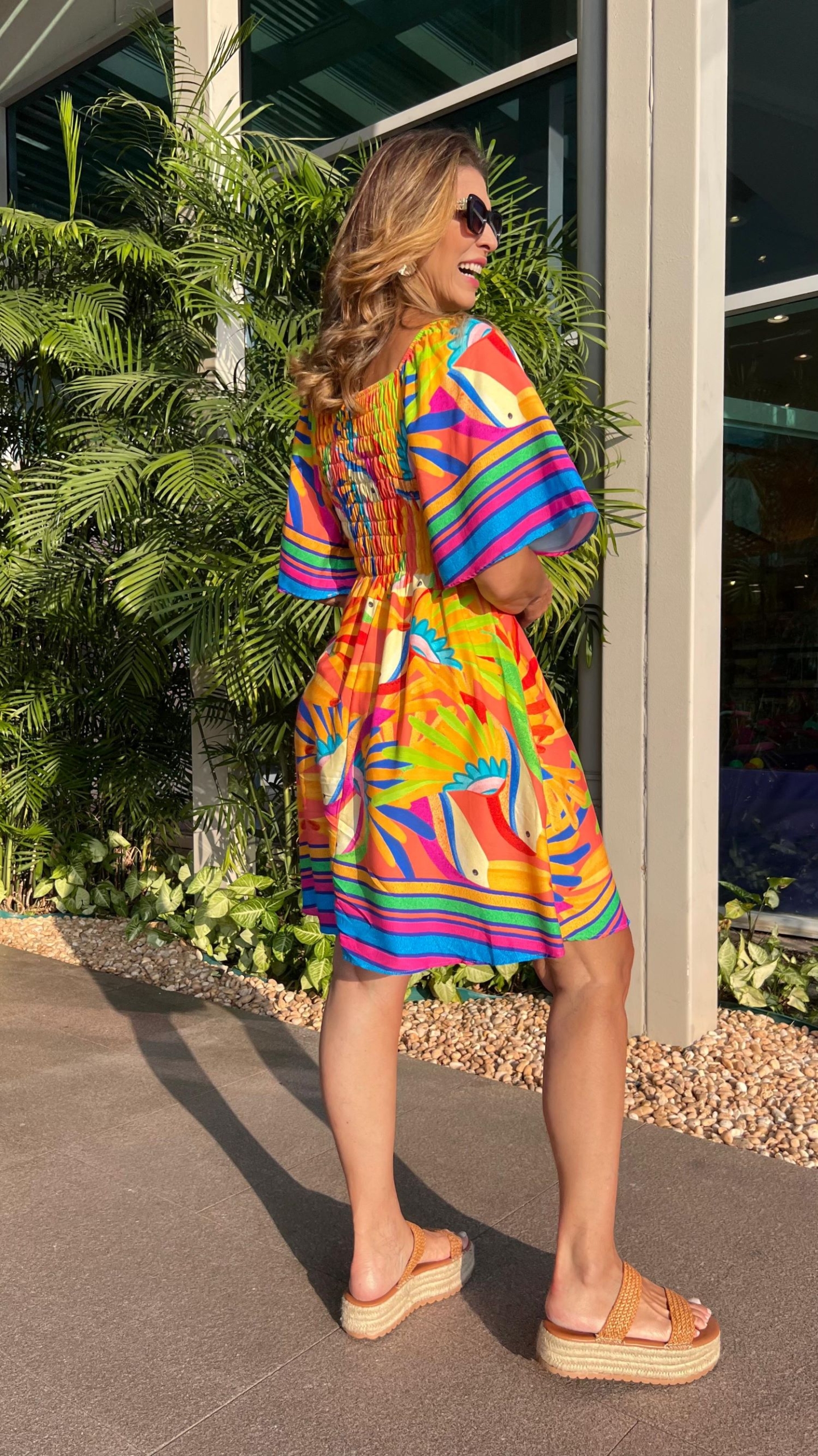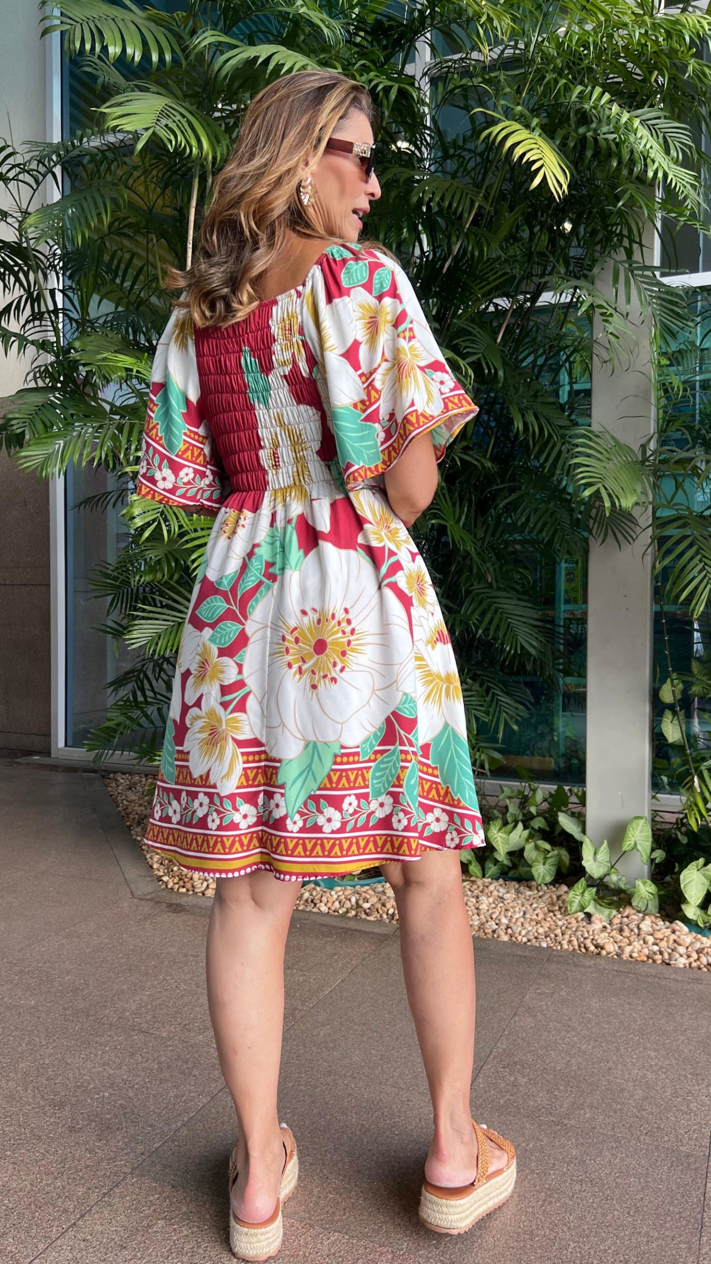 Vestido Curto Estampado em Viscose Pré-Lavada